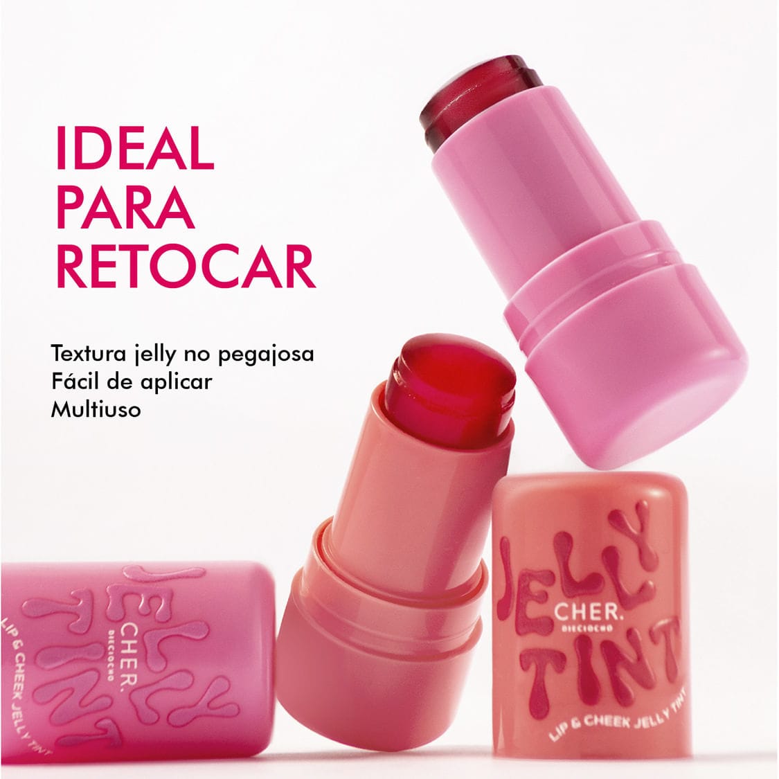 Descubrí el CHER Dieciocho Jelly Tint, el blush en gel que transforma tu maquillaje en segundos. Su textura tipo gelatina se funde con la piel dejando un rubor fresco, natural y luminoso, ideal para lograr ese efecto “buena cara” sin esfuerzo.
