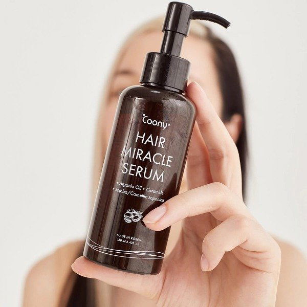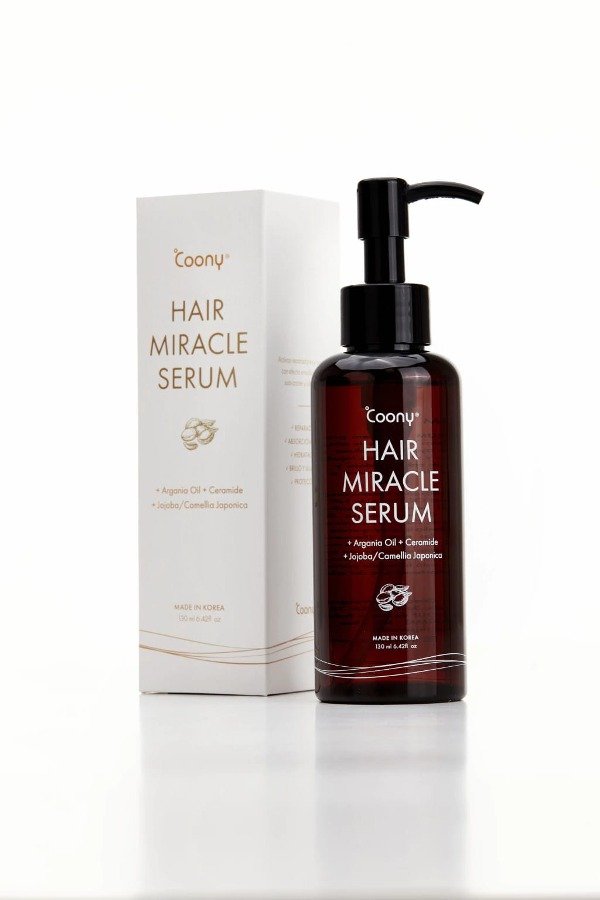 Coony Hair Miracle Serum es un suero premium para el cabello, con 7 destacados ingredientes derivados botánicos de alta pureza y concentración. Uno de ellos es el aceite de Argán, que ayuda a revitalizar el cabello dañado por el sol y las tinturas. Gracias a la ceramida y el aceite de Jojoba, ayuda a mejorar la textura y restaurar el brillo, para crear un cabello sedoso y saludable.