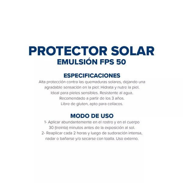 - Agitar bien antes de usar. Aplique abundantemente en el cuerpo y en el rostro 30 (treinta) minutos antes de la exposición al sol.