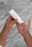 2. Agitar el envase y mezclar una muy pequeña cantidad de producto (uña menique) con agua en la palma de la mano, y frotar hasta generar espuma.