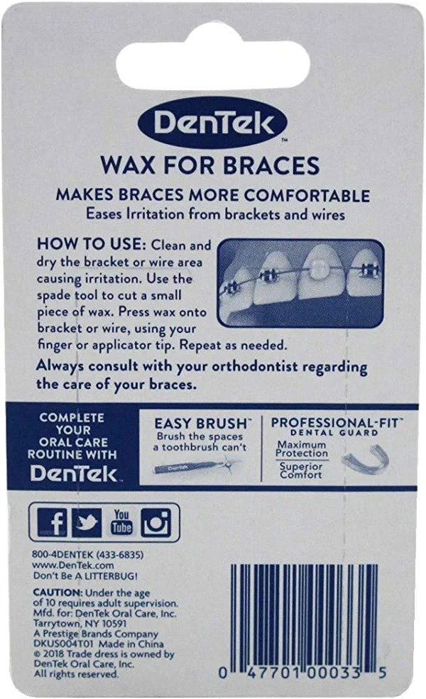 DenTek Cera para Frenos, Incluye un aplicador para facilitar su uso. Esta cera ayudará a aliviar las molestias de los alambres y brackets de ortodoncia. Es fácil de aplicar, se aclara y tiene un refrescante sabor a menta.
