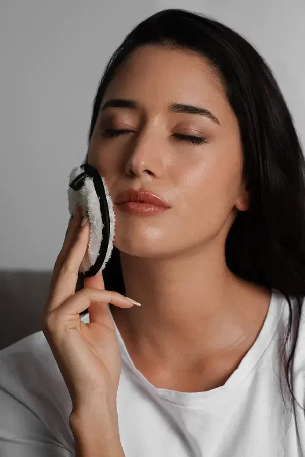 Simplemente hay que humedecer el pad y limpiar suavemente el maquillaje. Se pueden utilizar ambas caras del Pad.