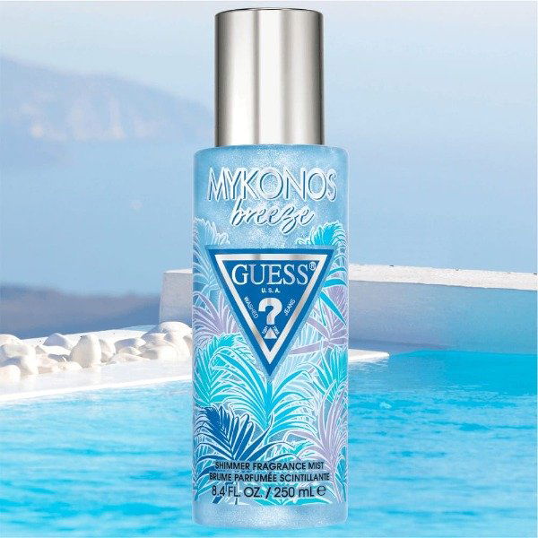 El spray corporal para mujer Guess Destination Mykonos Breeze huele como un día de verano sin preocupaciones en una hermosa playa iluminada por el sol.