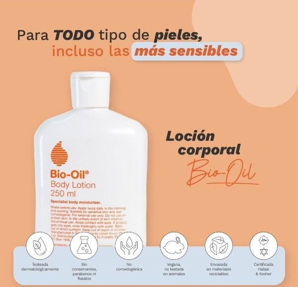 Bio-Oil® Loción Corporal no contiene parabenos, conservantes ni perfumes.