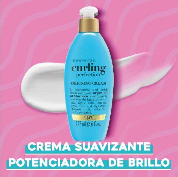 La crema para peinar Ogx Curl Perfection con su fórmula hidratante, compuesta por el exótico aceite de argán de Morocco, ayuda a definir y realzar todos tus rulos, eliminando el frizz y dejándolos suaves y brillosos.