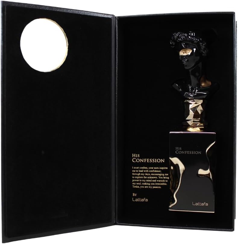 His Confession es una fragancia masculina oriental amaderada que mezcla calidez, misterio y sofisticación. Ideal para ocasiones especiales, su apertura combina canela 🍂, lavanda 🌿 y mandarina 🍊. El corazón destaca el toque aterciopelado del iris 🌸, el resinoso benjuí 🌲, la frescura del ciprés 🌲 y el floral Mahonial 💐. La base cálida de vainilla 🍦, haba tonka 🌰, ámbar 🌟, cedro 🌲, incienso 🔥 y pachulí 🌿 deja una estela rica y sofisticada. Perfecta para hombres que buscan un aroma envolvente y distinguido. 😎🍂