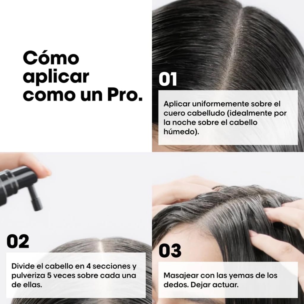 Aplicá todos los días sobre el cuero cabelludo seco o húmedo.