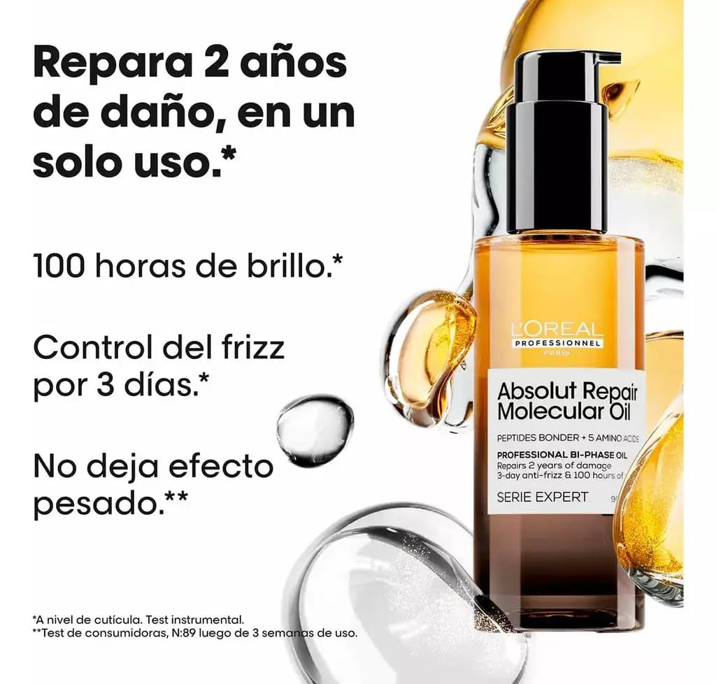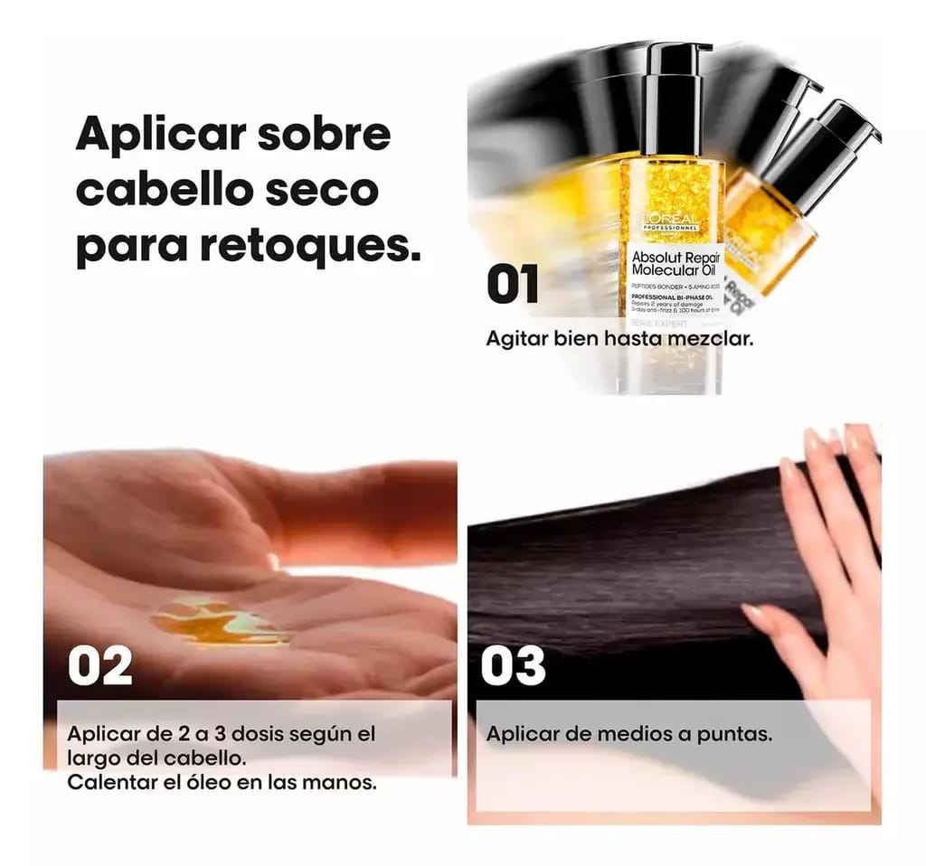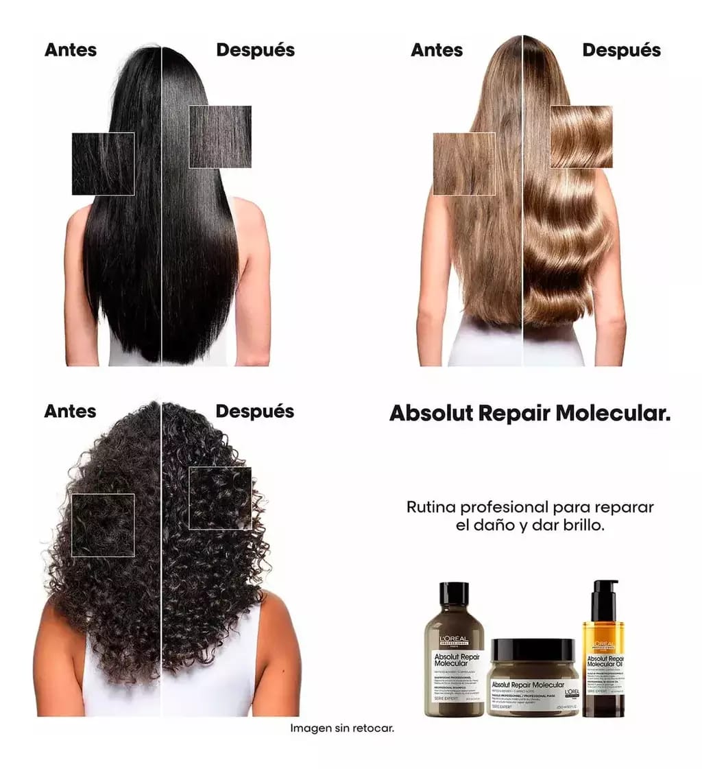 Reparación molecular + brillo extremo sin efecto pesado.