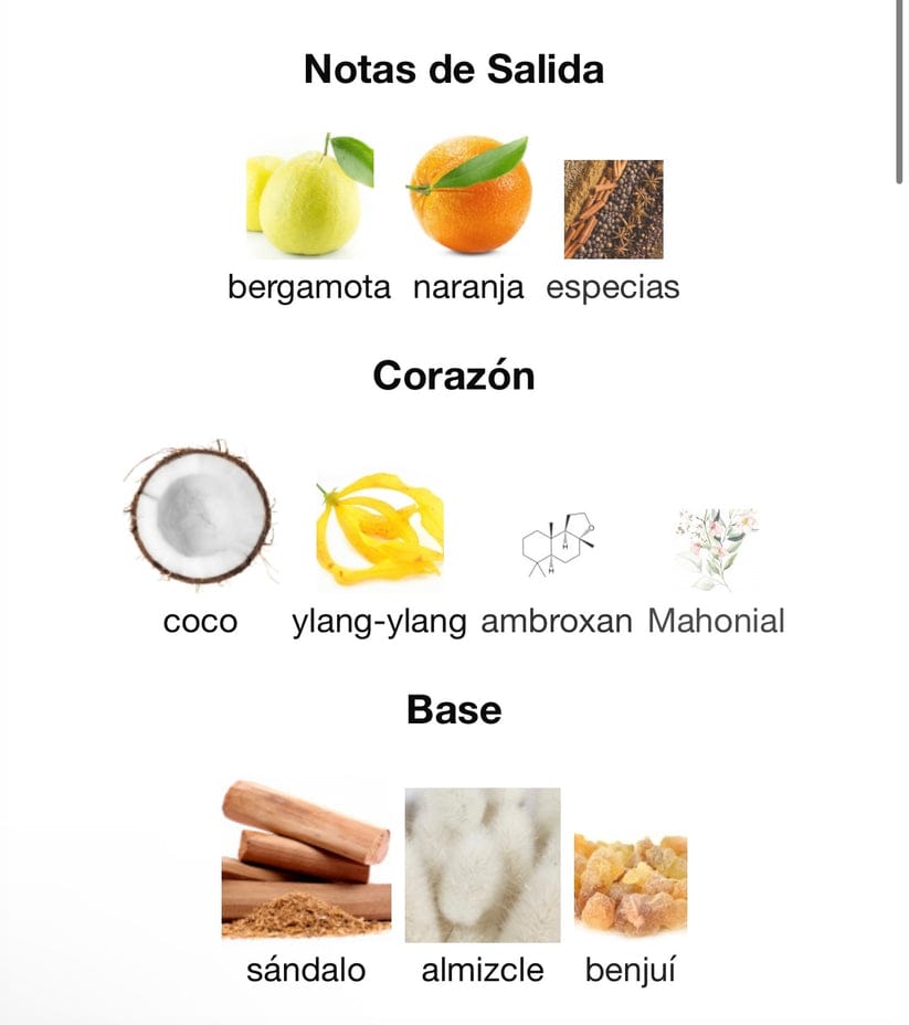 ✨ Notas Medias: Mahonial, coco 🥥, ylang ylang 🌼 y ambroxan aportan un encanto aromático.