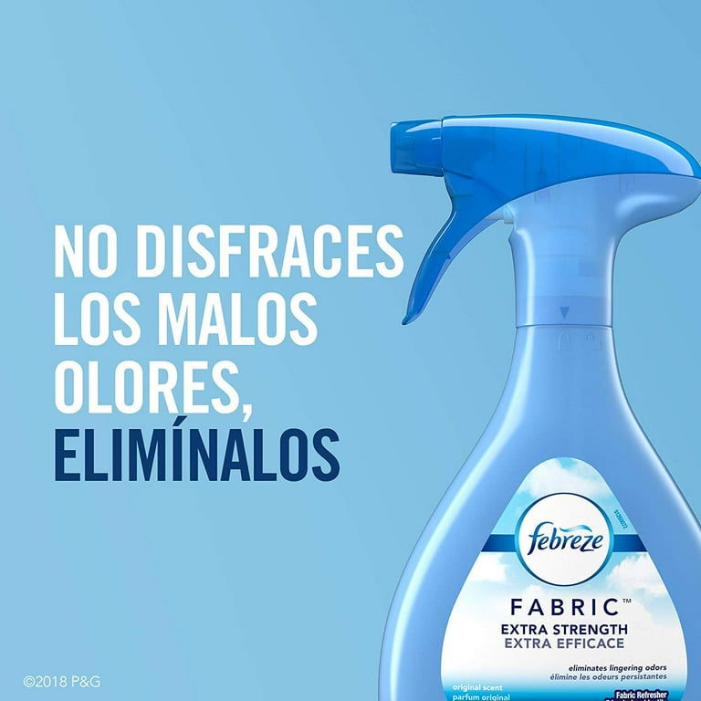 🌬️ Febreze FABRIC elimina esos olores difíciles de las telas que desearías poder lavar. Con su tecnología OdorClear, deja un aroma ligero y fresco en cada uso. Su fina niebla penetra profundamente en las telas, eliminando olores comunes como los de mascotas, humo y cuerpo, ¡refrescando toda la habitación al instante! 🛋️✨
