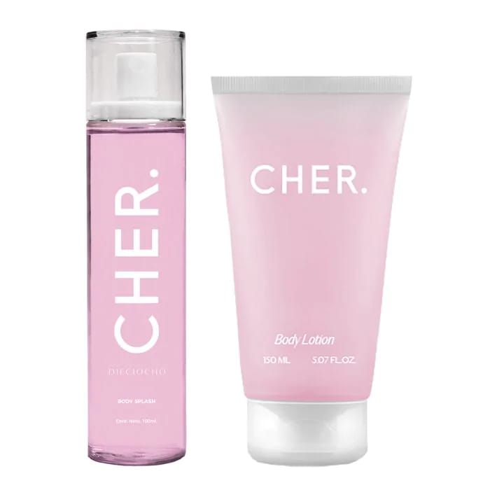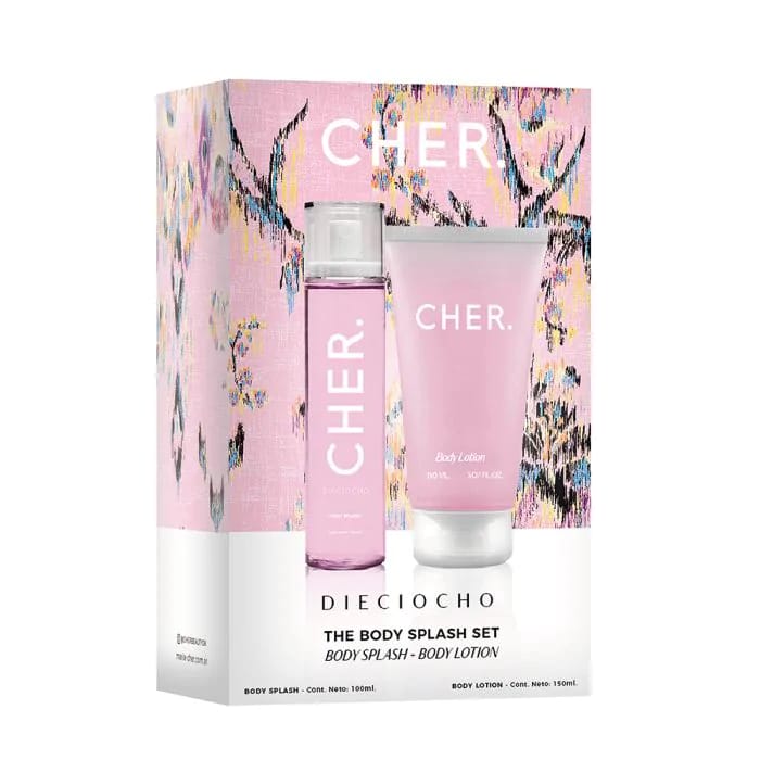 El set Cher Dieciocho incluye: Dieciocho Body Splash de 100 ml y Body Lotion de 150 ml.