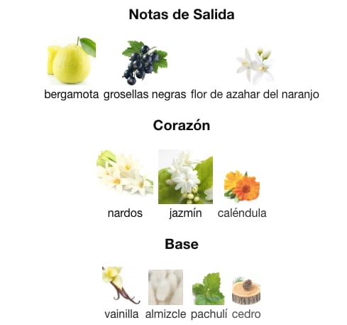 Esta mezcla floral es seductora y cautivadora, evocando la magia de una noche en Dubai, donde la belleza y la sofisticación se encuentran.