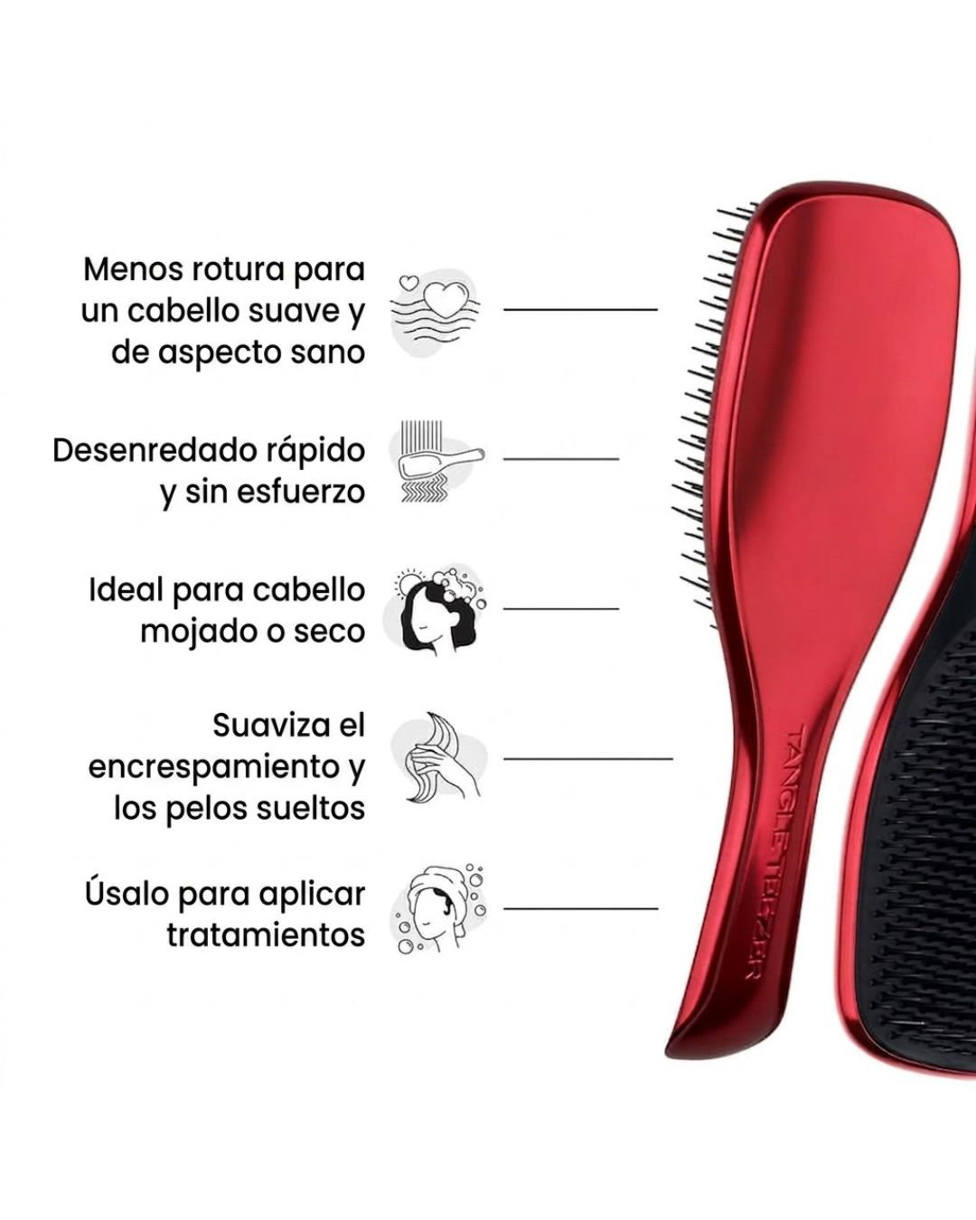 La TANGLETEEZER Wet Detangler Mini mantiene la tecnología de cerdas flexibles en un formato compacto. Desenreda fácil, sin tirones y sin dañar el cabello, incluso húmedo.